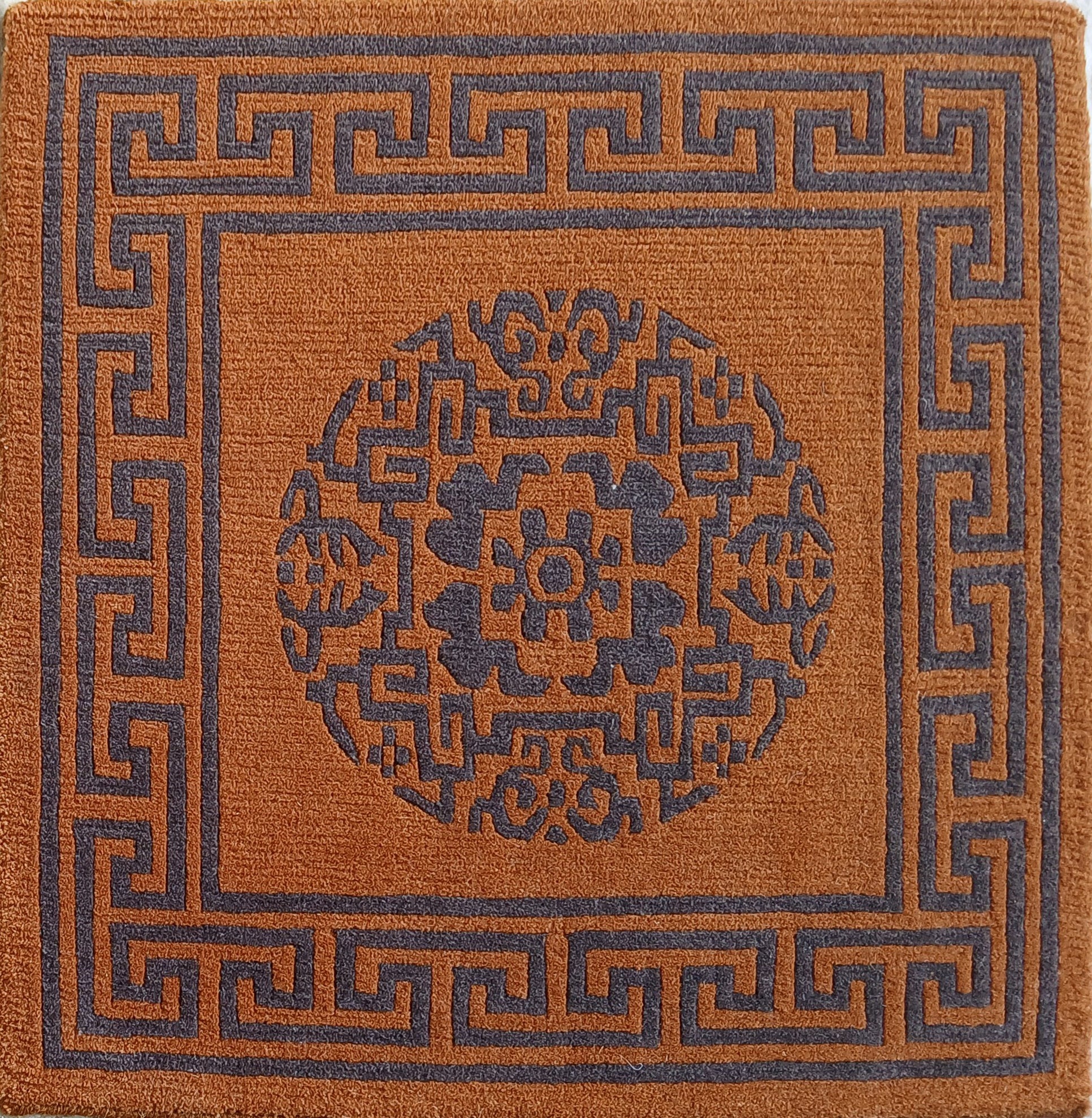 Handmade Tibetan carpet for seat with traditional medallion design. Material(s): Tibetan wool